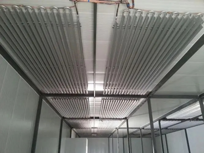 制冷设备配件铝管蒸发器利用无风压的冷空气自然对流,保持仓库内的湿度。与空冷蒸发器相比,采用低温贮藏、水果保鲜、鲜肉脱酸等工艺,食品的干耗几乎为零。